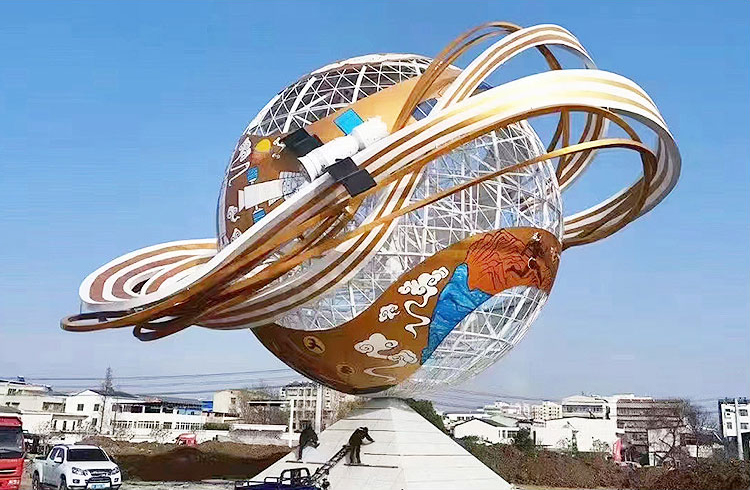 鏤空是不銹鋼雕塑的一種整體表現(xiàn)形式,就是可以從作品外面看見內(nèi)部或看穿。編織網(wǎng)格、打孔、鉆眼、花紋字符拼貼做成的雕塑都屬于鏤空樣式。鏤空不銹鋼雕塑往往會與燈光一起使用,透視而過的燈光斑駁自然,給人不一樣的視覺感受,如鏤空球。