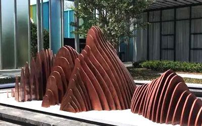 地產(chǎn)類不銹鋼雕塑以大氣磅礴為主要表現(xiàn)形式,一般都是抽象的,傳遞一種視覺上的震撼效果,常見如圓環(huán)、鏤空球、云朵、假山、浪花、水滴等等。