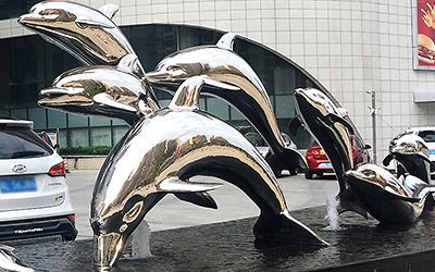 應用于水景之中的不銹鋼雕塑,包括但不限于人物、動物植物、景觀擺件等,常見如貝殼、海螺、海豚、魚、仙鶴、天鵝、青蛙、小鹿、荷花、蓮花、海浪浪花、水滴、假山、鏤空球、圓環(huán)等等。